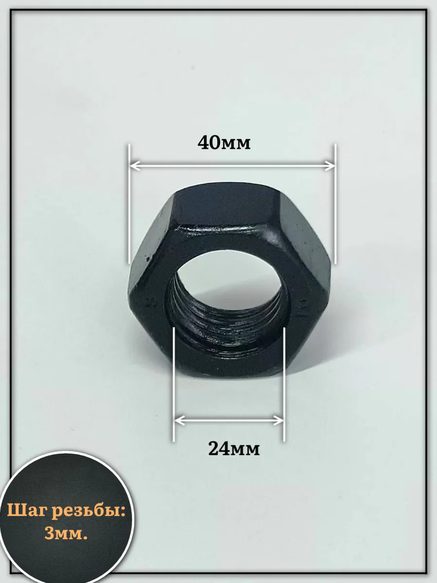 Гайка черная М24 высокопрочная к.п.10 DIN934, 4 шт.