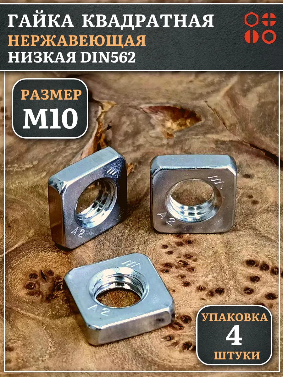 Гайка квадратная М10 нержавеющая низкая DIN562, 4 шт.