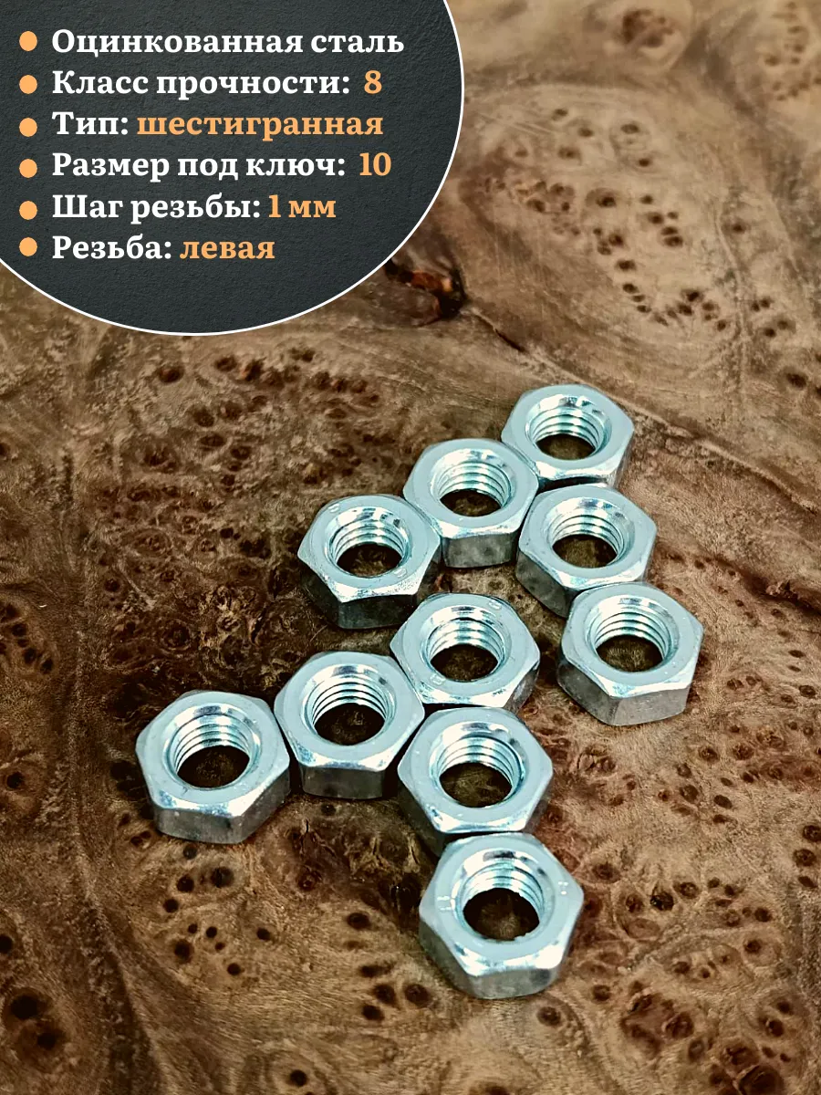 Гайка левая резьба М6 высокопрочная к.п.8 ОЦ DIN934, 10 шт.