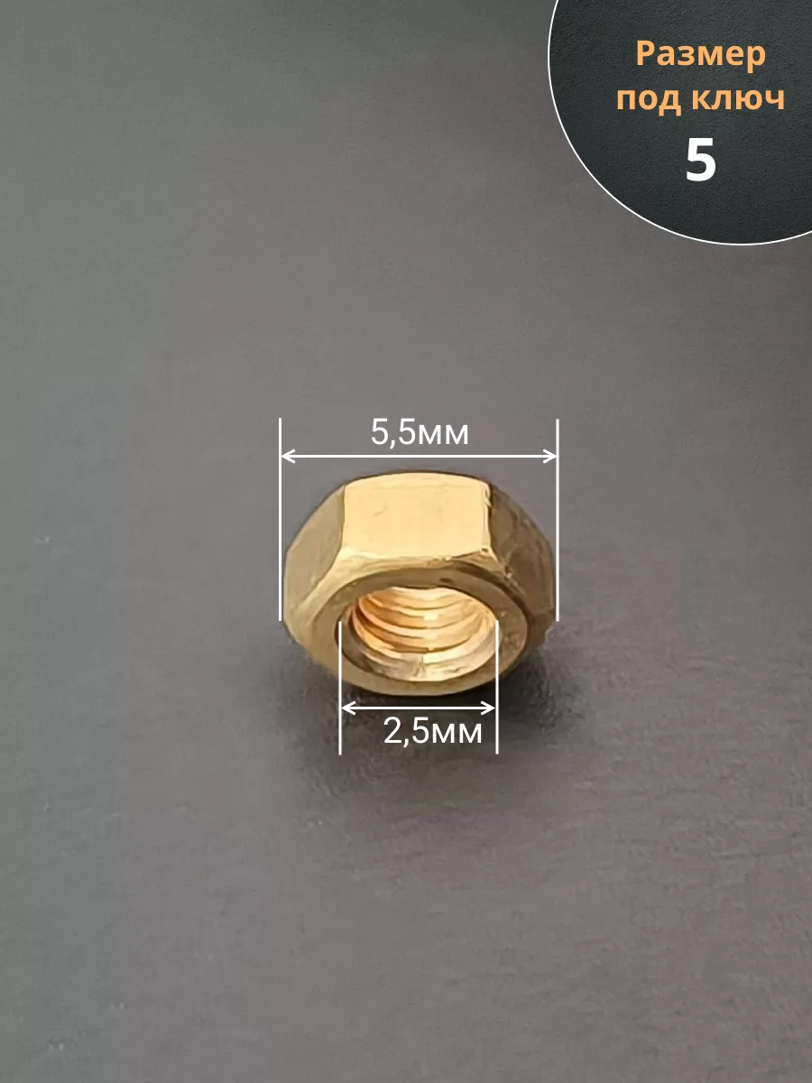 Гайка М2,5 латунная DIN934,10 шт
