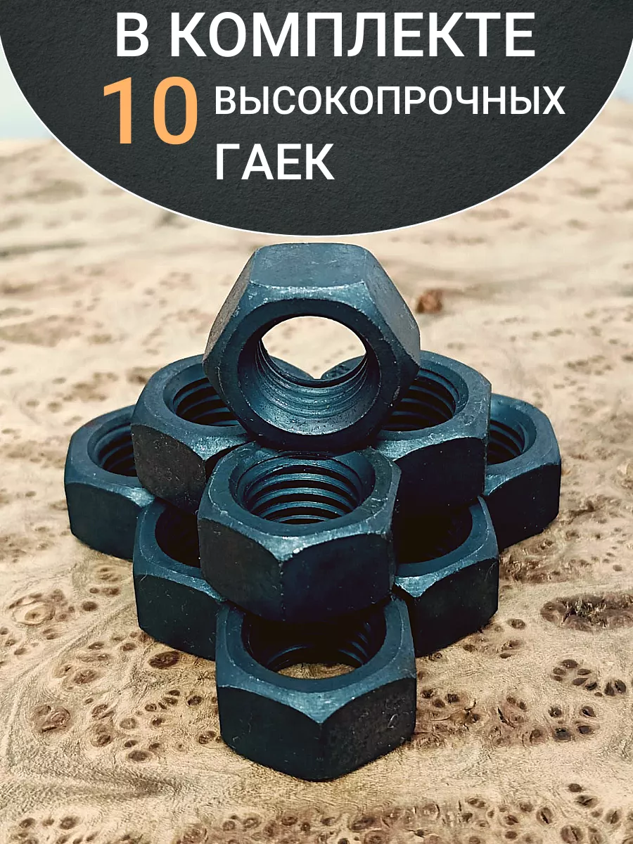Гайка М20 высокопрочная черная к.п.10 DIN934, 10 шт.