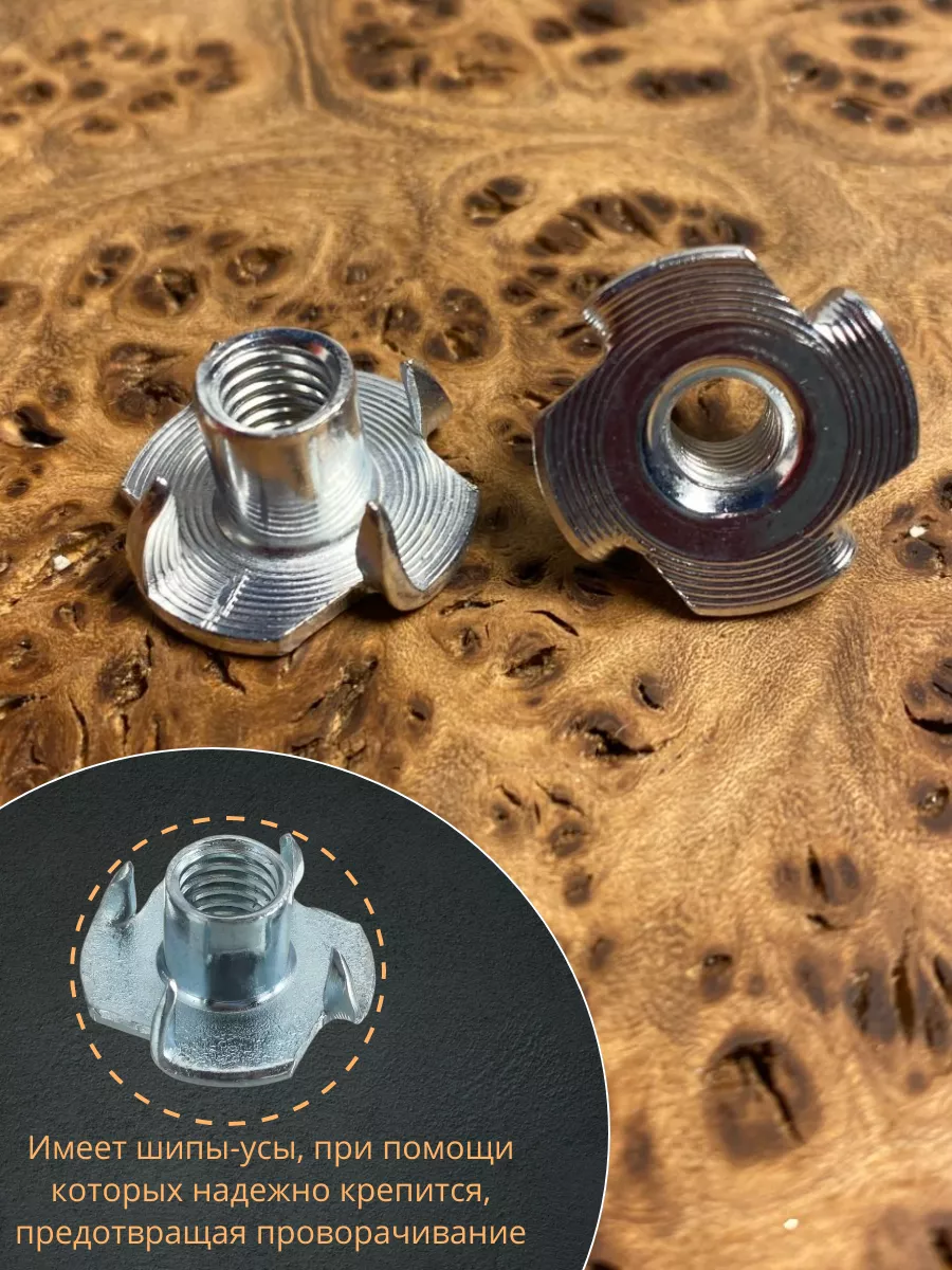 Гайка мебельная М10 крыльчатая врезная ОЦ DIN1624, 10 шт.