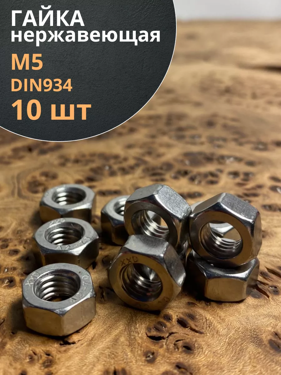Гайка Нержавеющая М5 DIN 934 А2 шестигранная 10 шт