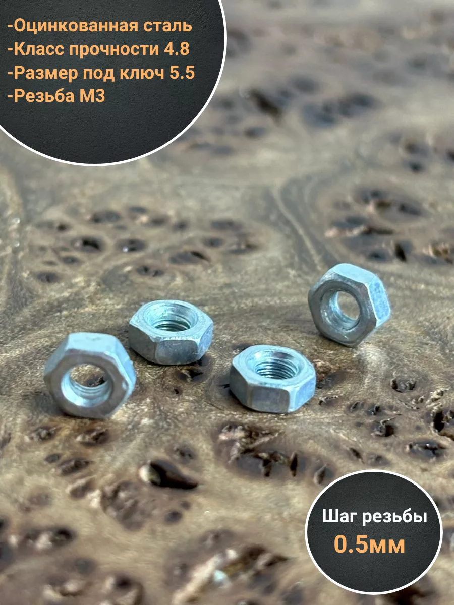 Гайка оцинкованная М3 DIN 934 шестигранная 10 шт.