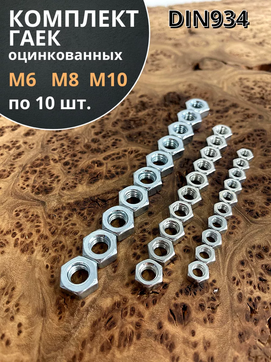 Гайка оцинкованная М6,8,10 DIN 934 (по 10 шт.)