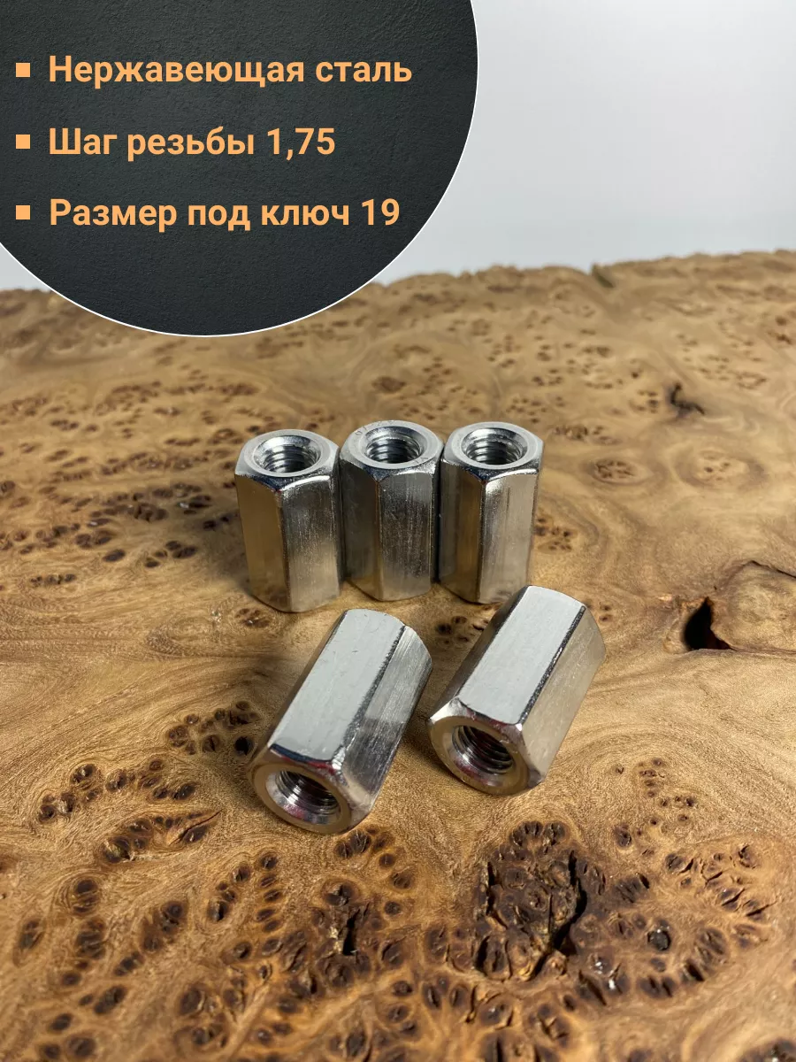 Гайка переходная нержавеющая М12 DIN6334, 5 шт.