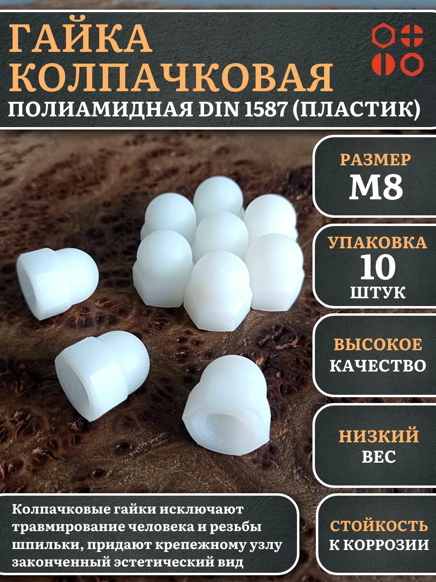 Гайка полиамидная колпачковая (пластик) М8 DIN1587, 10 шт.