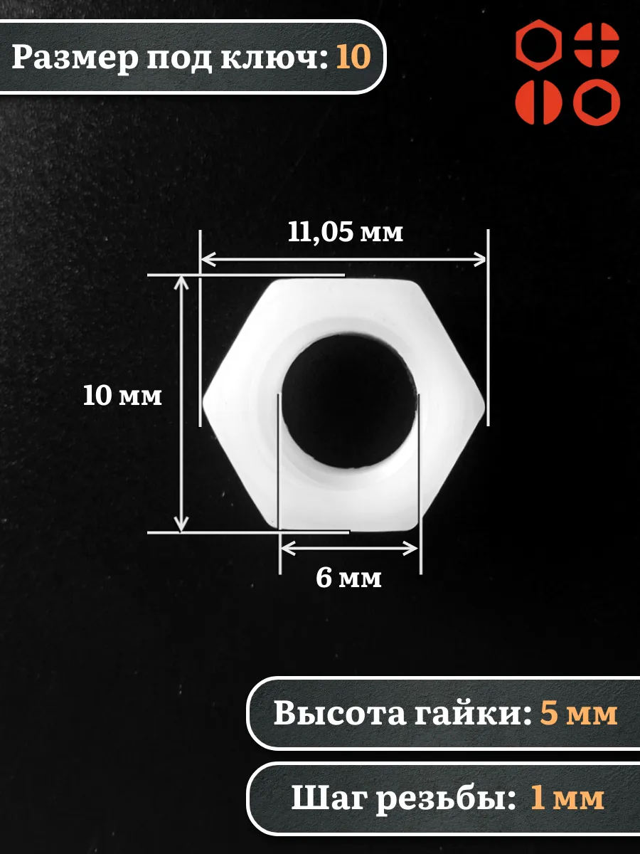 | Гайка полиамидная М6 DIN934 (пластик), 10 шт. | 2000000642994ф10 | 1 шт. |