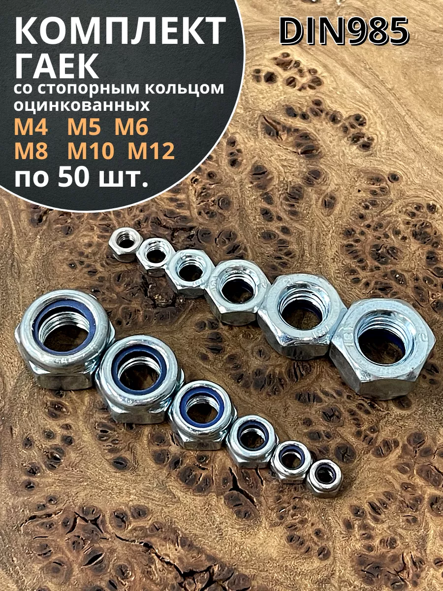 | Гайка со стоп кольцом М4,5,6,8,10,12 ОЦ DIN985 (по 10 шт) | 11612 | 1 шт. |