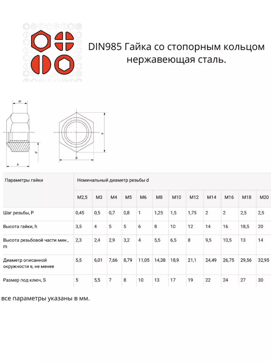 | Гайка со стоп кольцом М6,8,10 нержавеющая (набор по 50шт) | 11617 | 1 шт. |