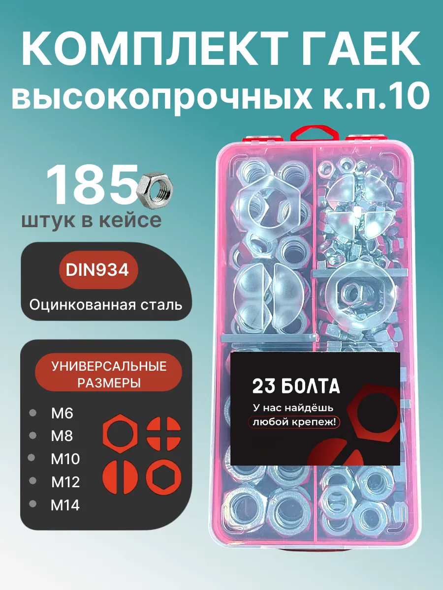 Гайки к.п.10 ОЦ DIN934 М6,8,10,12,14 в органайзере НАБОР 1