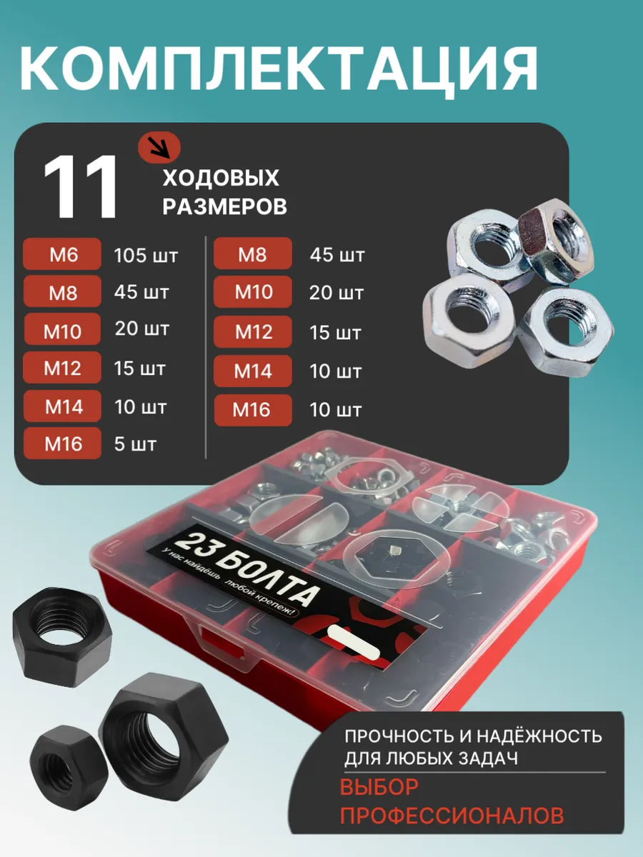 Гайки к.п.10 ОЦ и чёрные DIN934 М6 -16 в органайзере НАБОР 3