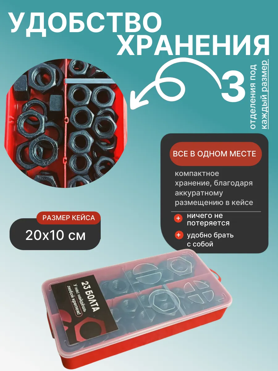 Гайки к.п.12.9 черные М10,12,16 в органайзере НАБОР 1