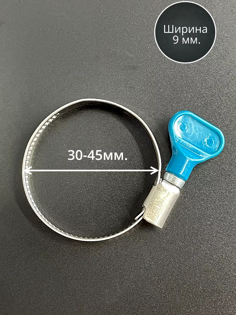 Хомут червячный 30-45 с барашком металлический, 5 шт.