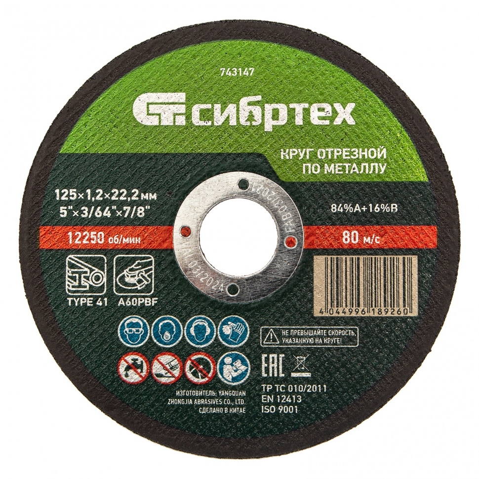 Круг отрезной по металлу 125х1,2х22,2 мм 84%А+16%В Сибртех