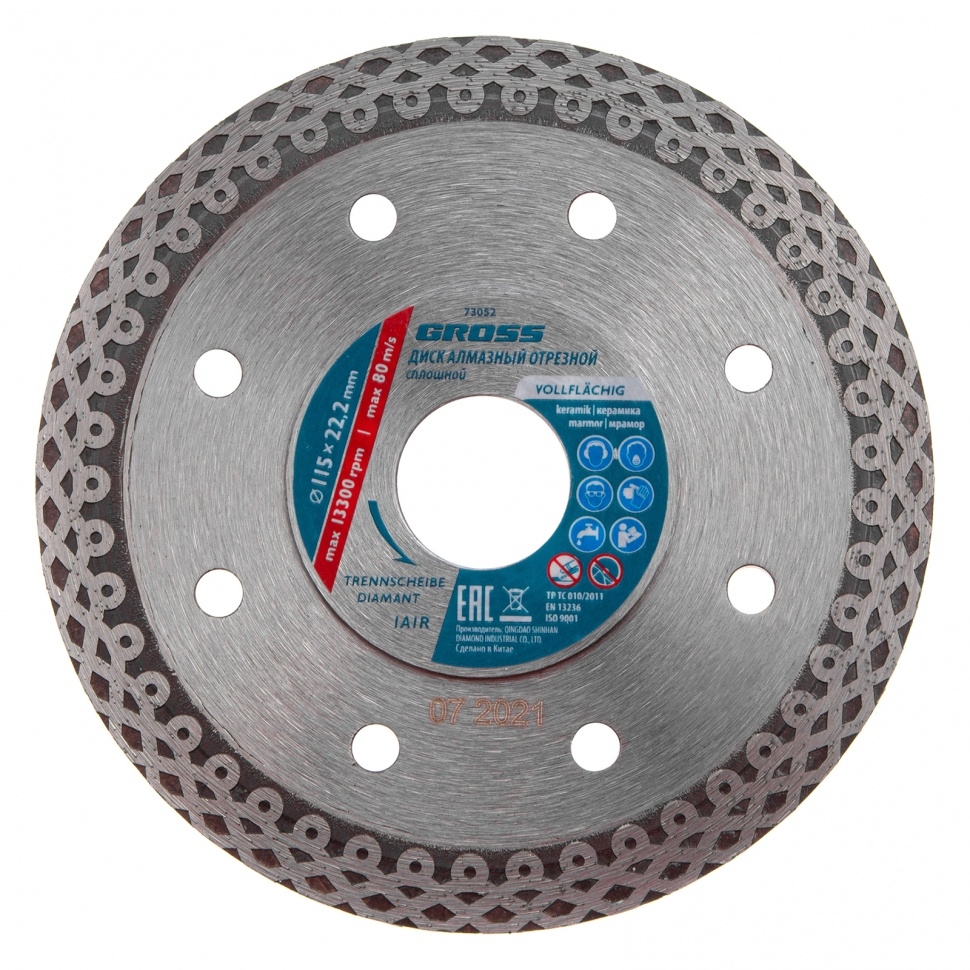 | Диск алмазный тонкий сплошной мокрое резание 180х22,2 мм Jaguar, Gross | 73056 | 1 шт. |