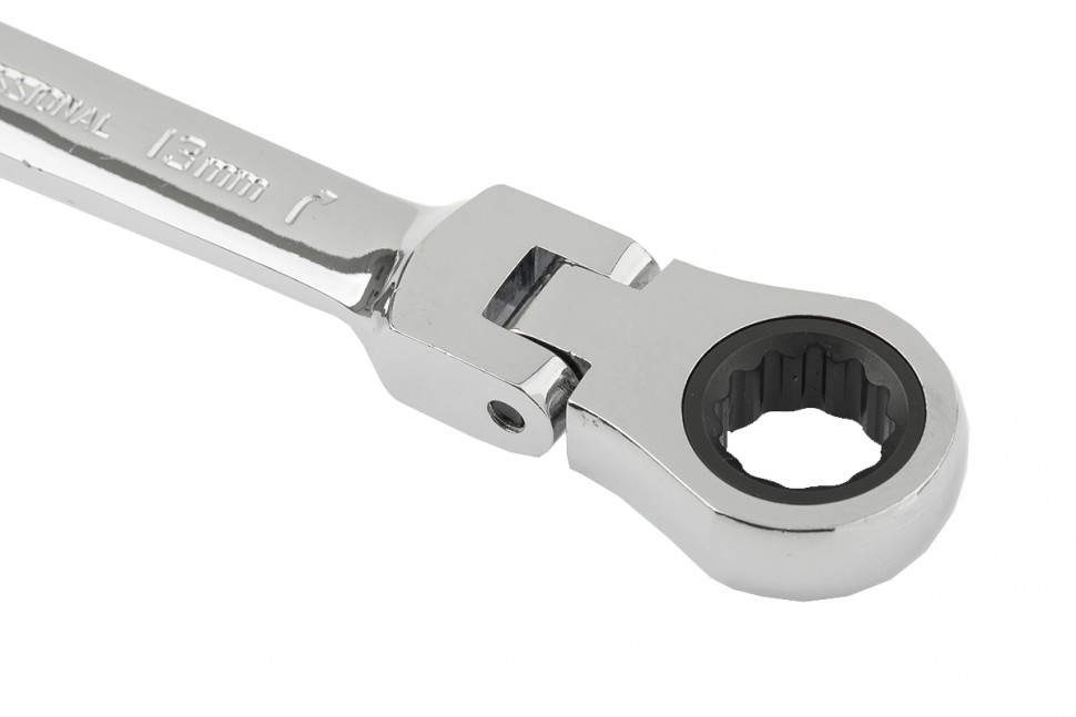 Ключ комбинированный трещоточный шарнирный зеркальный хром 13 мм CrV Matrix