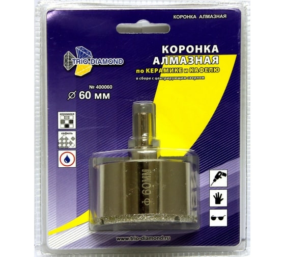 Коронка по керамике и кафелю, алмазная с центрир.сверлом 60 мм