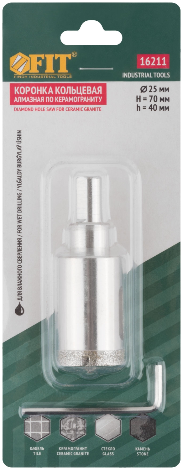 | Коронка по керамограниту, камню и кафелю кольцев с центров сверлом 16х70 мм | 16206 | 1 шт. |