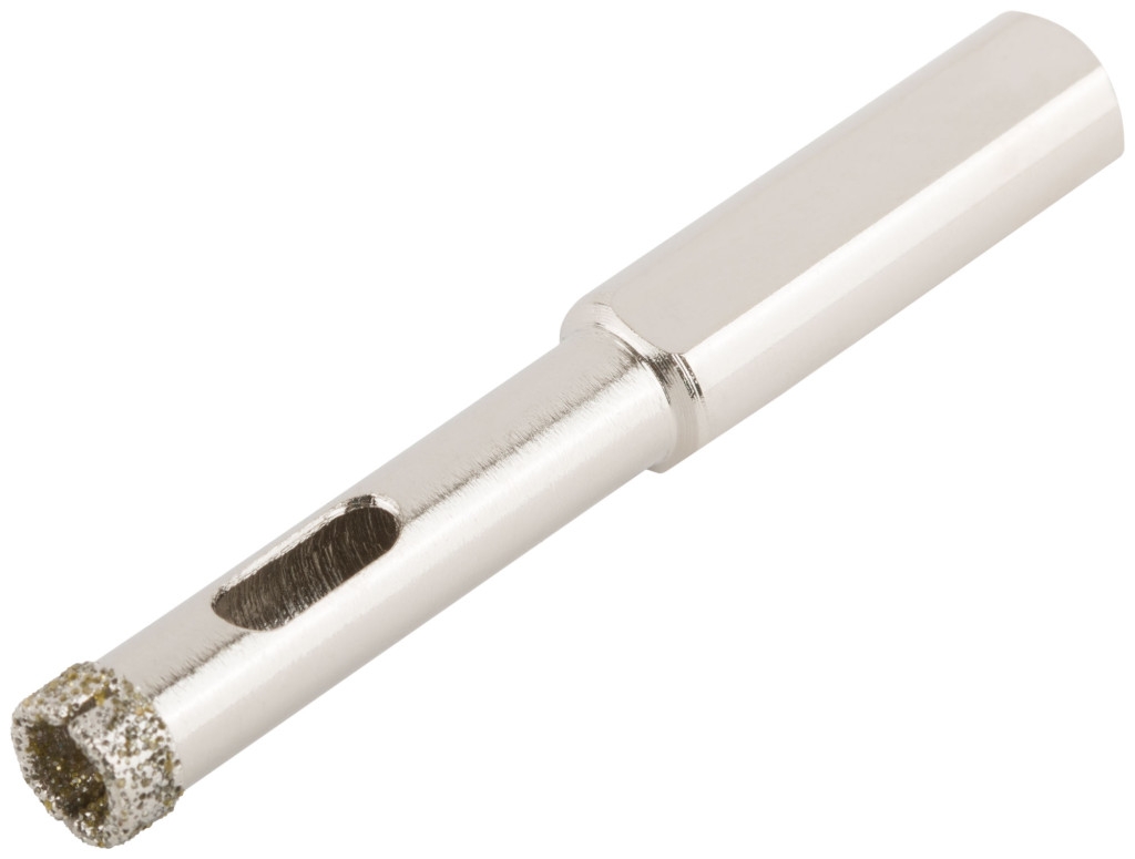 Трехгранный хвостик . Для вырезания круговых отверстий в керамограните, камне, стекле, кафельной плитке. Влажное сверление. Материал: инструментальная сталь, режущая кромка содержит порошок из технических алмазов.