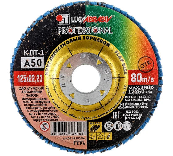 | Круг лепестковый плоский 125х22 мм A 50 КЛТ1 Луга | D91012522140320 | 1 шт. |