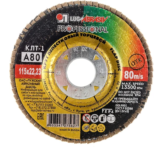 | Круг лепестковый плоский 115х22 мм A 80 КЛТ1 Луга | D91011522140200 | 1 шт. |