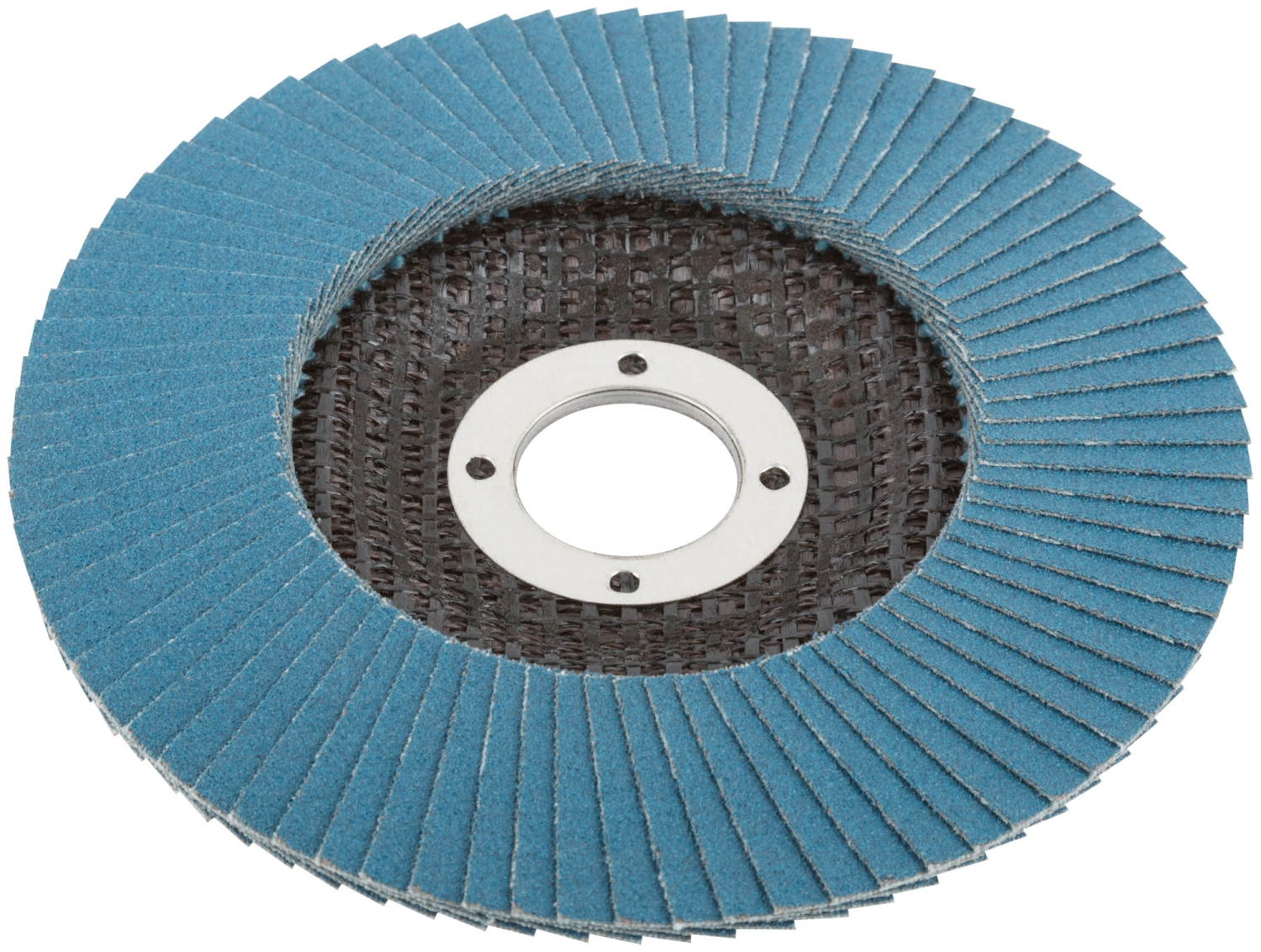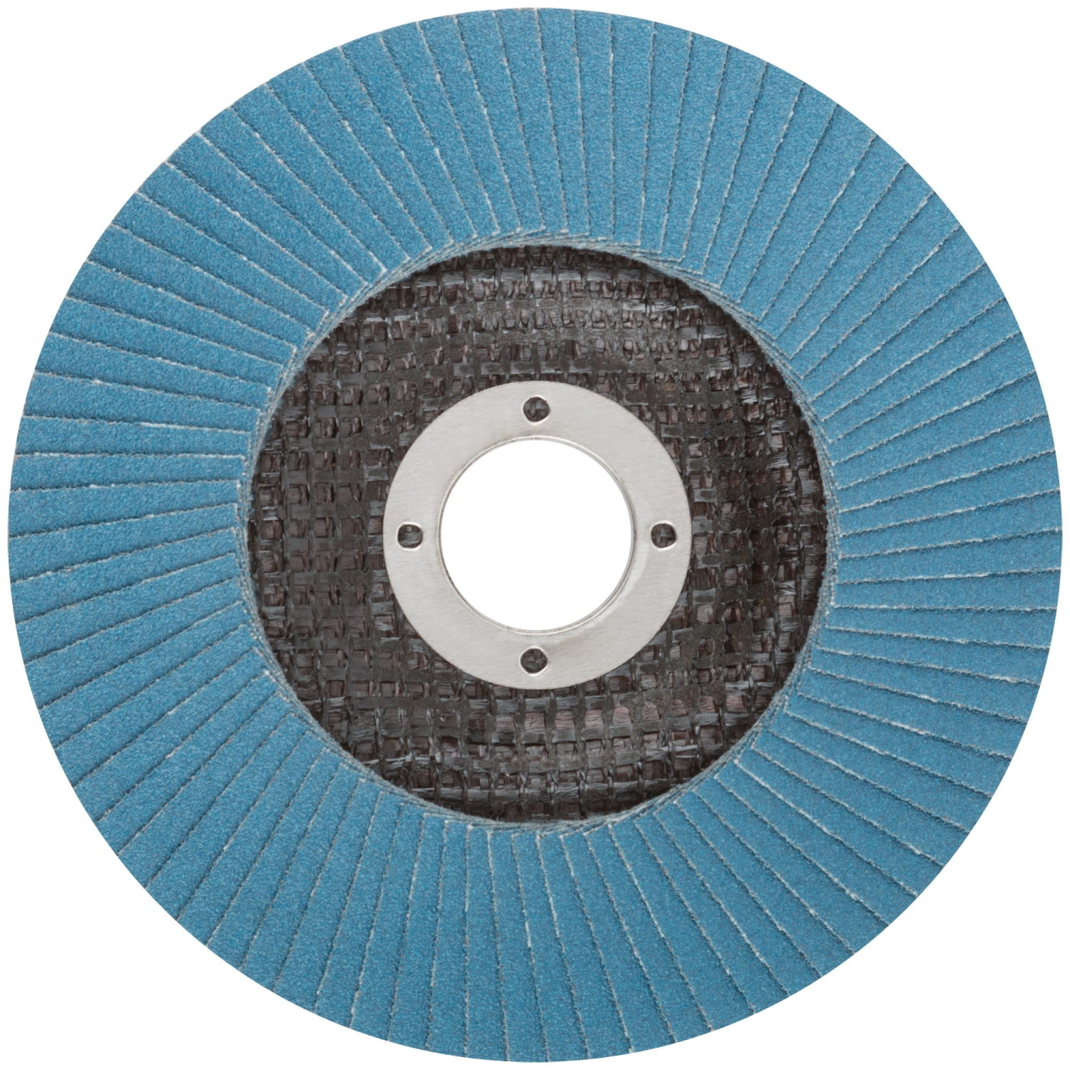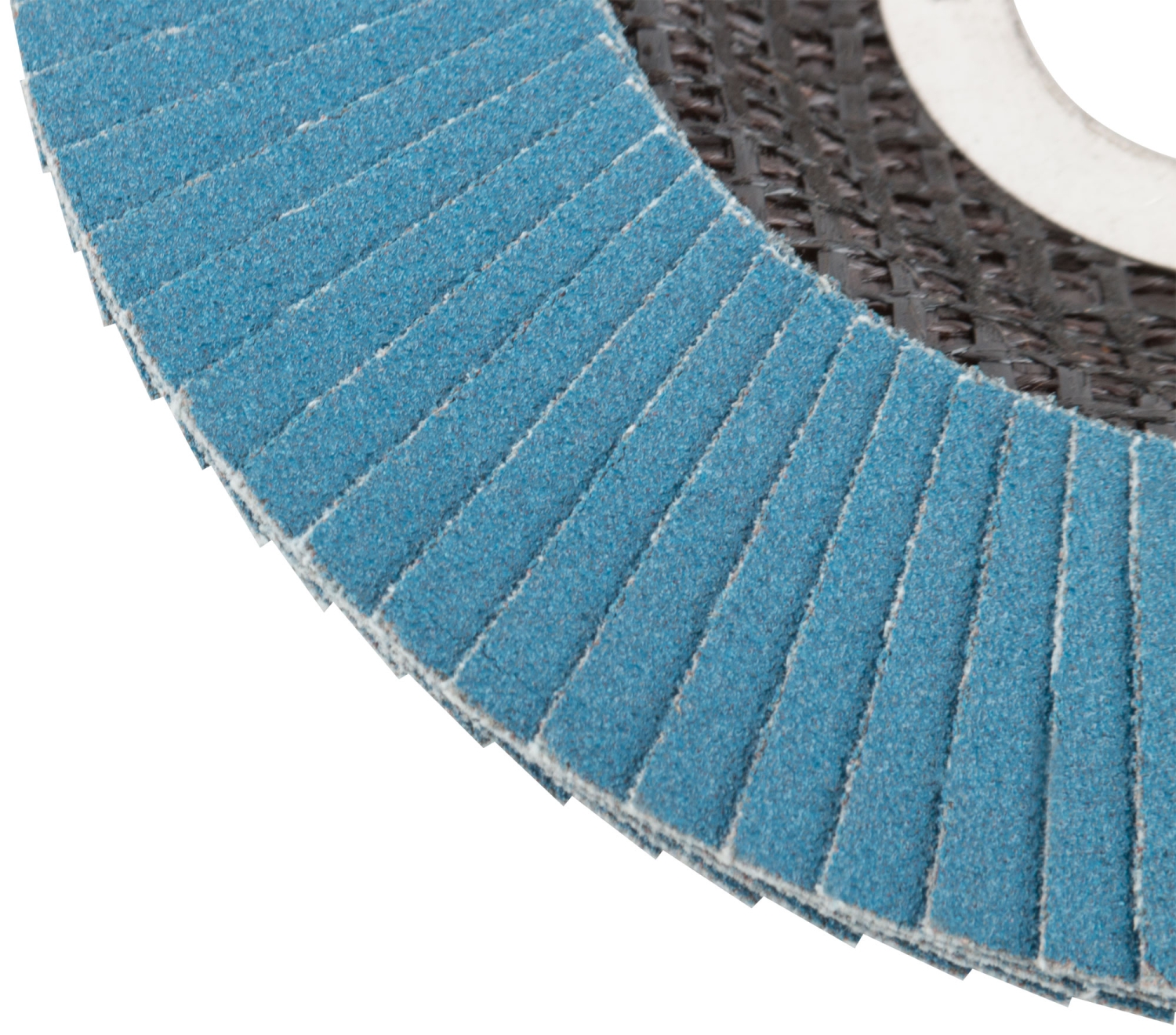 При изготовлении используется высококачественный гибкий абразивный материал состоящий из тканевой основы на которую нанесен слой циркониевого электрокорунда. Круги на основе циркониевого электрокорунда имеют высокую прочность, коэффициент шлифования на кругах данного типа выше в несколько раз, чем у кругов на основе нормального электрокорунда, что особенно эффективно при работе с особо твёрдыми сортами металла. Структура циркониевого электрокорунда даёт эффект самозатачивания, что также увеличивает ресурс использования. Наполняемость диска составляет 80 лепестков с углом наклона 10 градусов, это позволяет увеличить КПД круга и его стойкость к износу в несколько раз. Предназначен для обработки нержавеющей стали, металла, сварных швов, пластика, дерева. Для углошлифовальных машин. Посадочный диаметр 22,2мм.