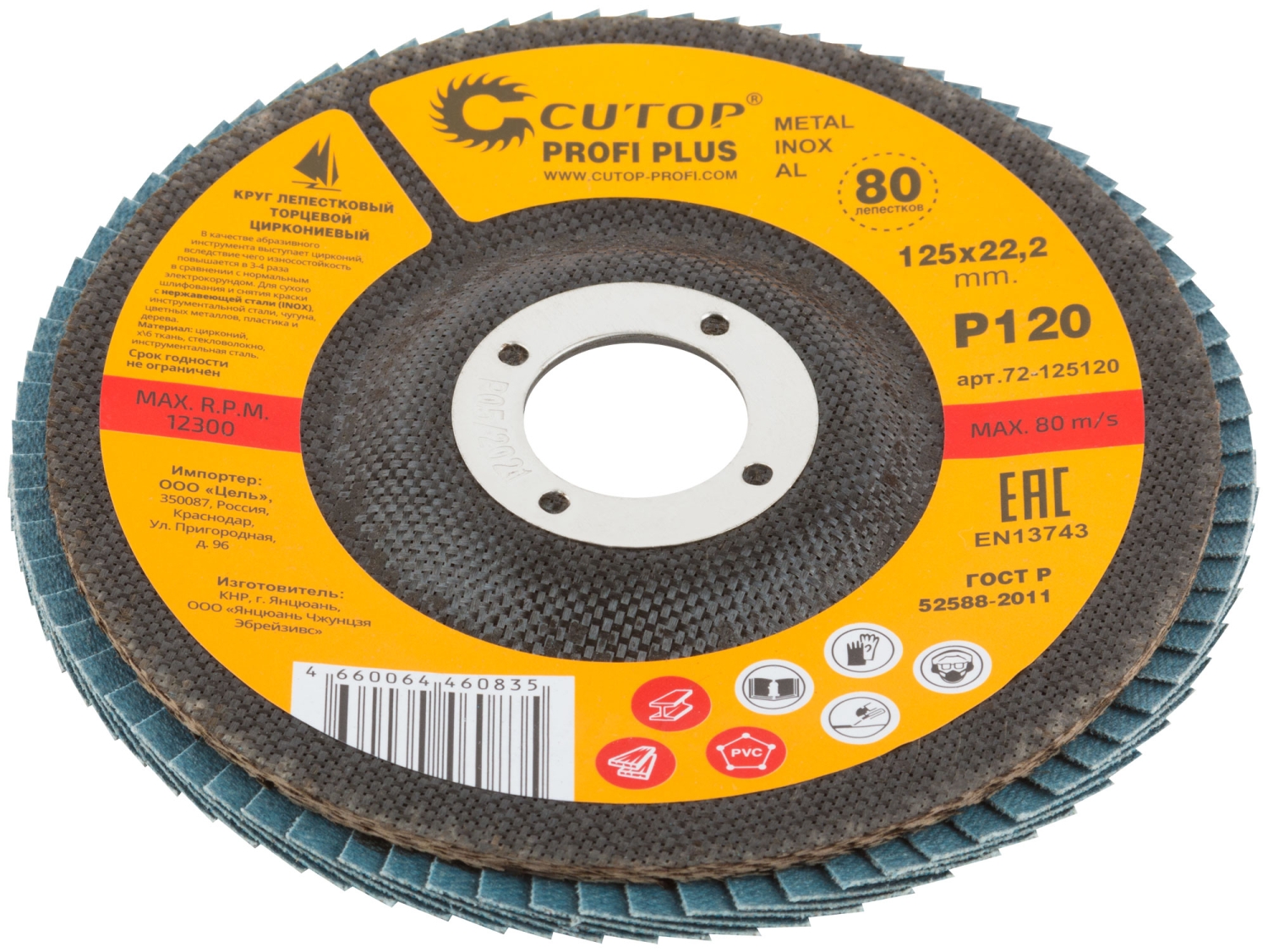 Круг лепестковый торцевой циркониевый Cutop Profi Plus (80 лепестков) 125х22,2 мм Р120 (CUTOP)