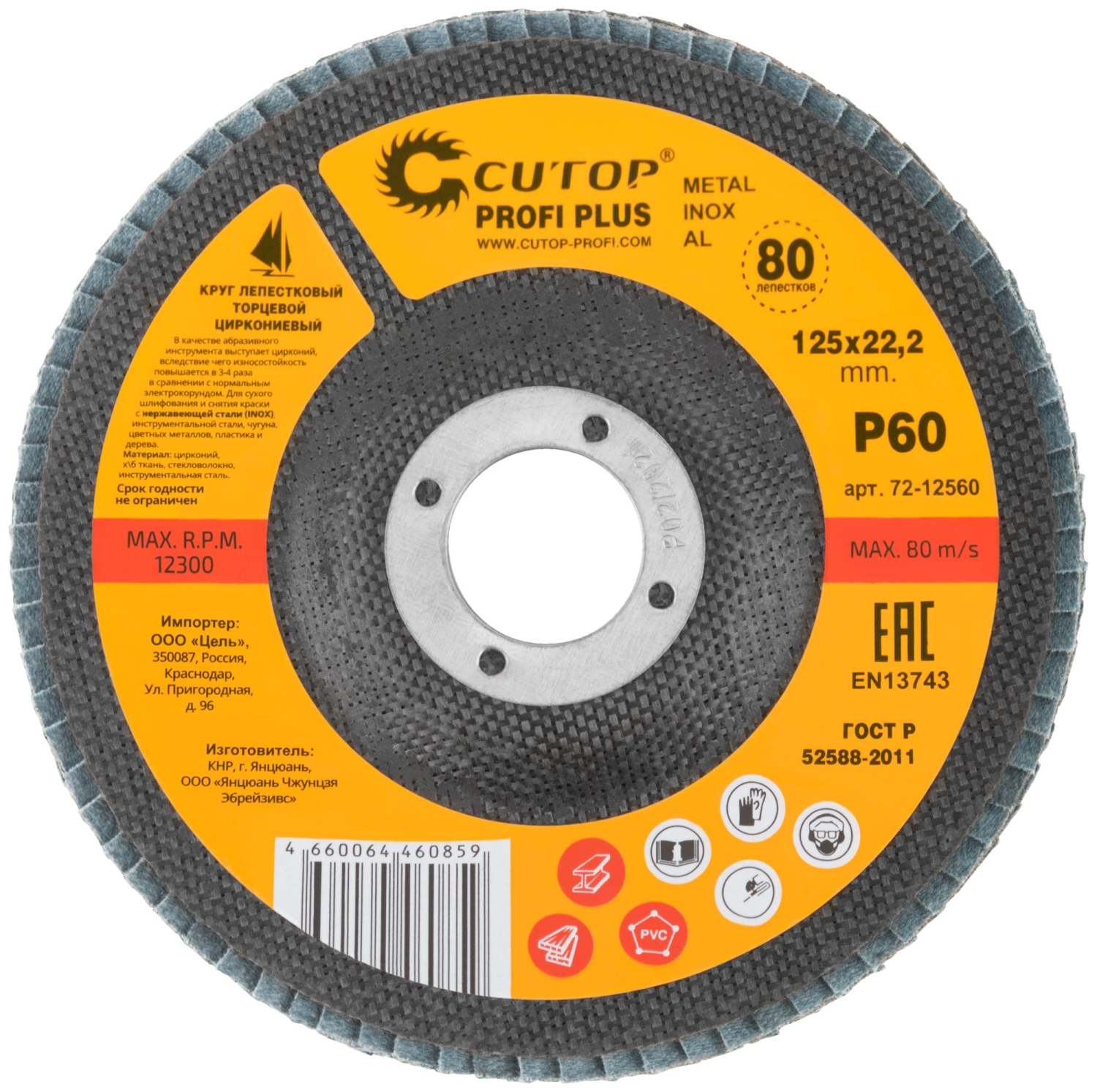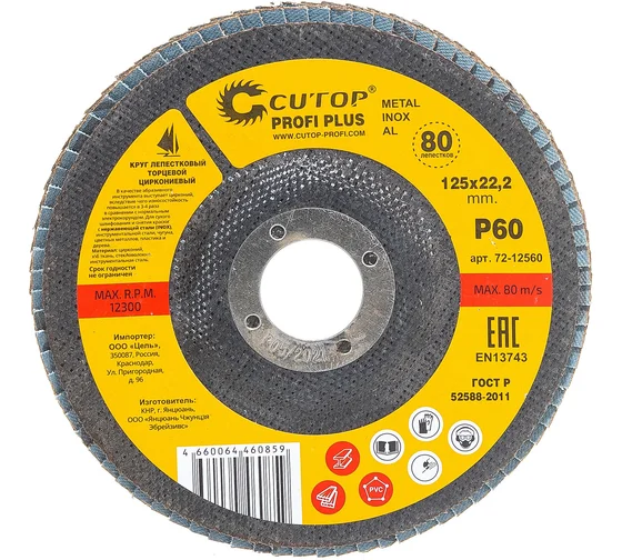 Круг лепестковый торцевой циркониевый Cutop Profi Plus (80 лепестков) 125х22,2 мм Р60 (CUTOP)