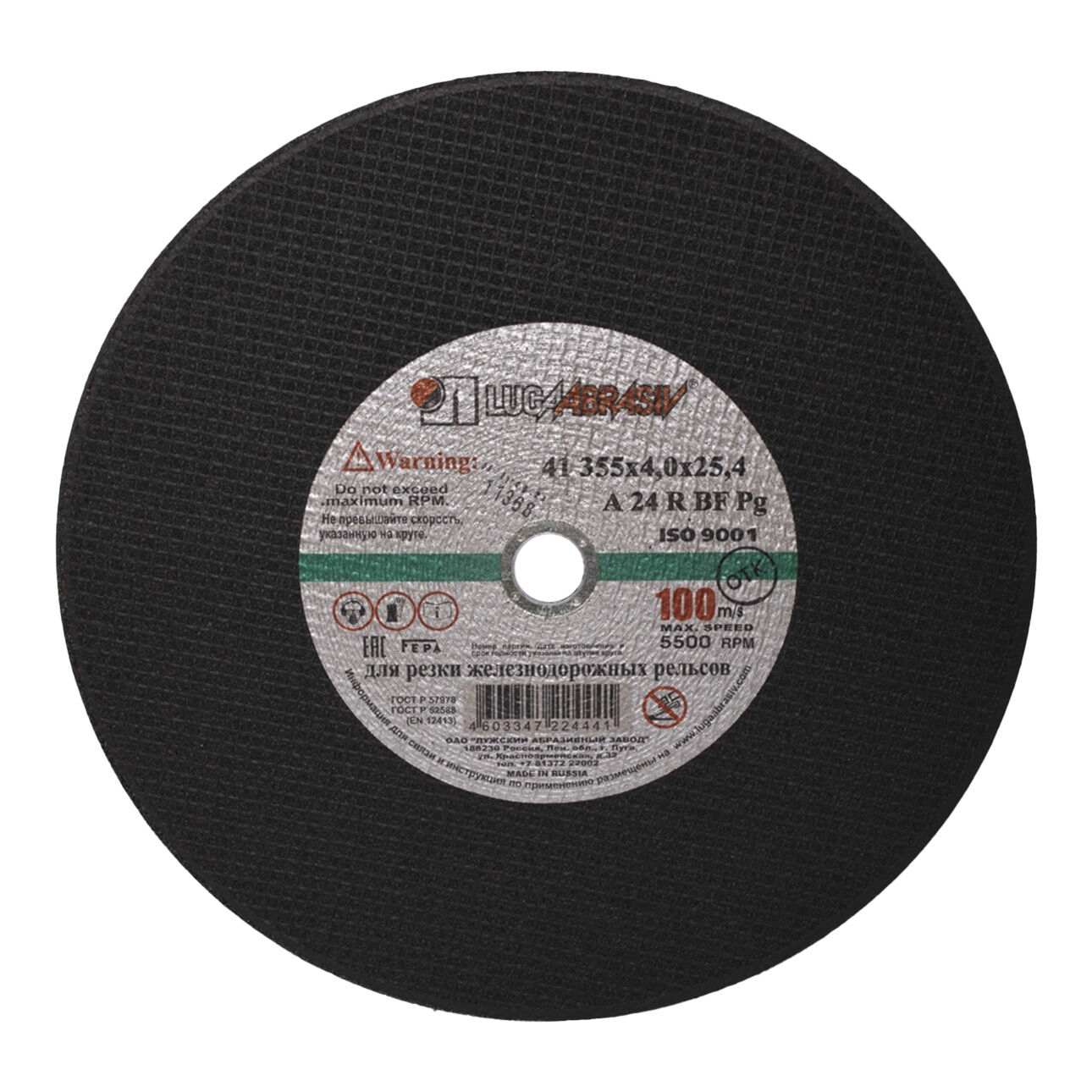 Круг отрезной мет 2 ручн. д/рельс 355х4,0х25,4 мм A 24 Q BF 80 Луга
