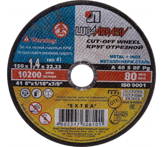 Круг отрезной мет+нерж A 40 S BF 80 Луга