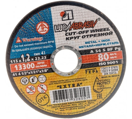 | Круг отрезной мет+нерж 125х1,2х22 мм A 54 S BF 80 Луга | D11001252212000 | 1 шт. |