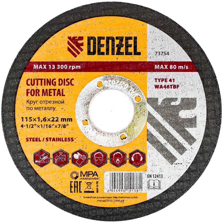 Круг отрезной по металлу 115х1,6х22,2 мм WA46TBF Denzel
