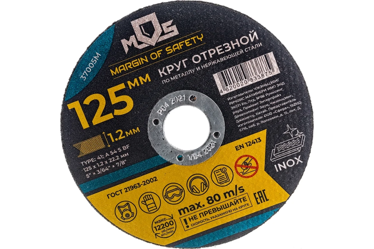 Круг отрезной по металлу 125х1,2х22,2 мм MOS