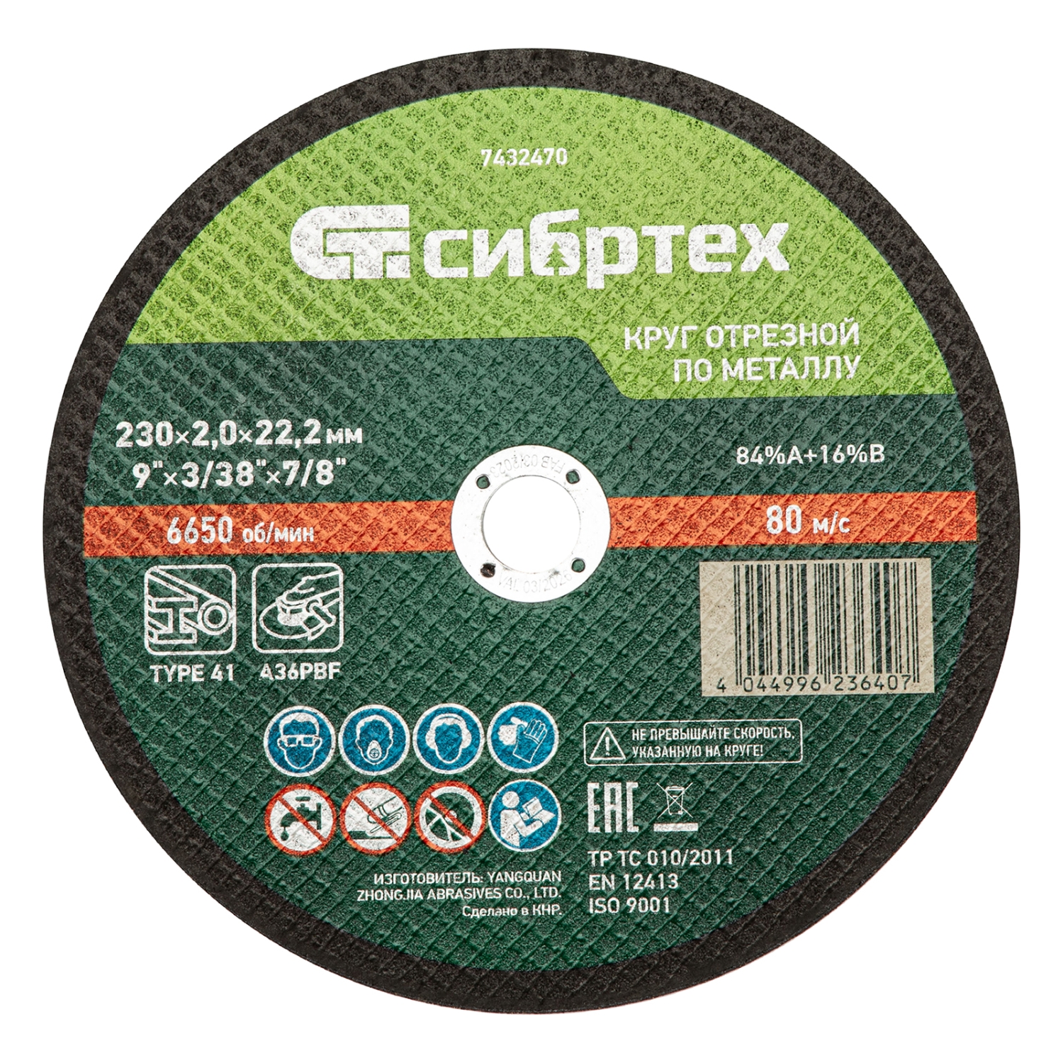 Круг отрезной по металлу 230х2,0х22,2 мм 84%A+16%B метал.банка 5 шт. Сибртех