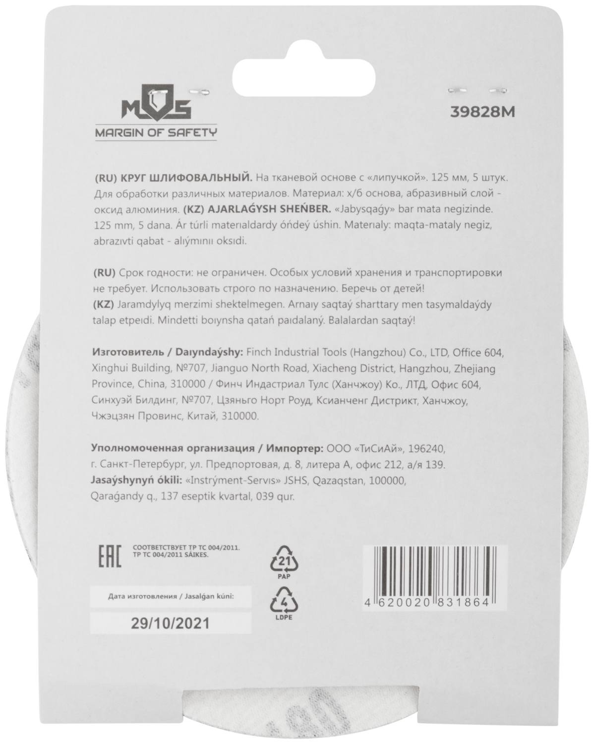 На тканевой основе с "липучкой". Диаметр 125мм, набор 5 шт. Для обработки различных метериалов. Материал: х/б основа, образивный слой-оксид алюминия