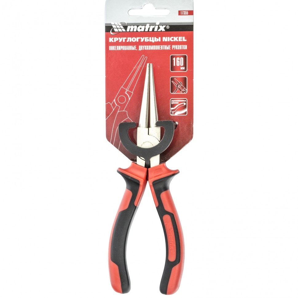 Круглогубцы NICKEL, никелир., двухкомпонент.рук. 160 мм Matrix