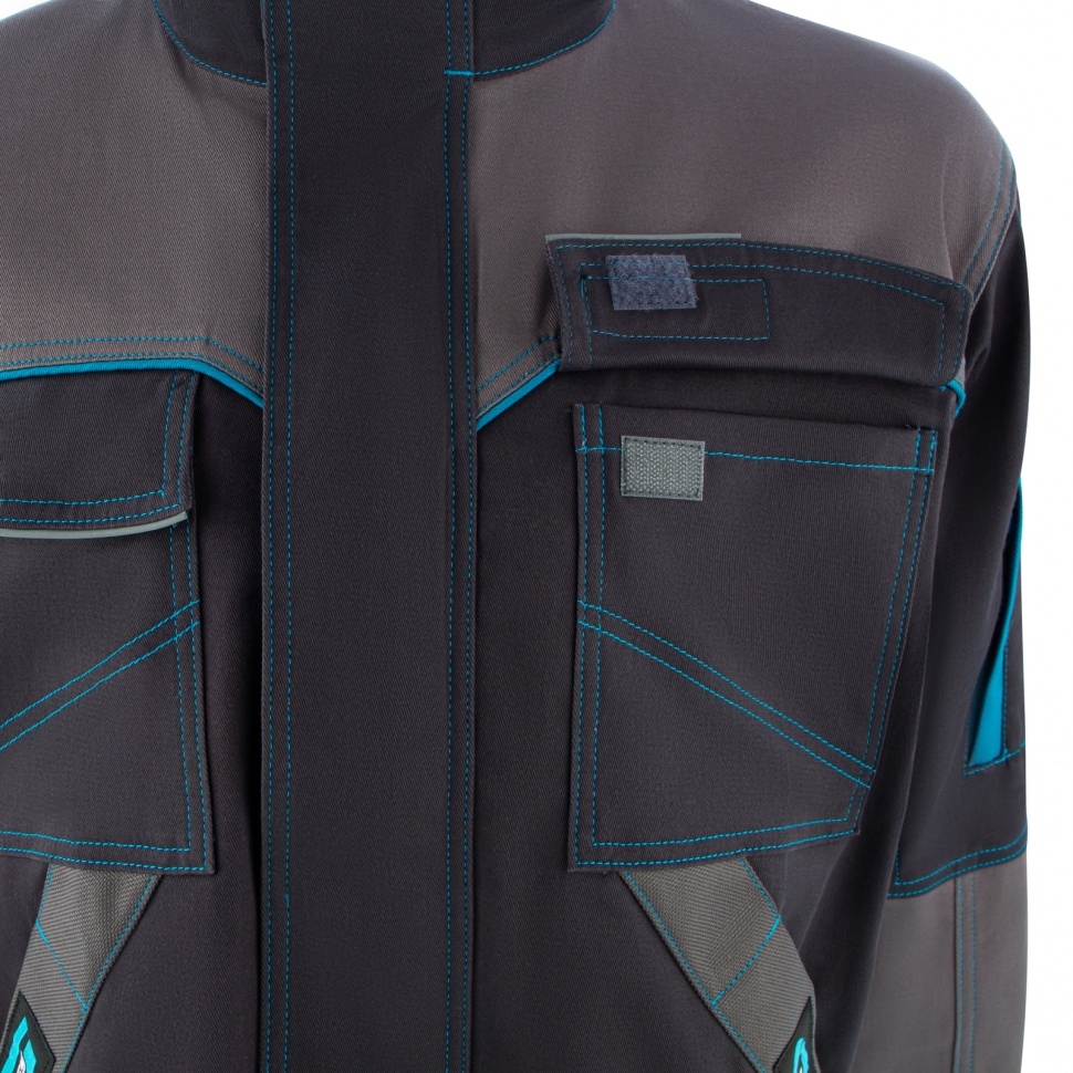 Профессиональная рабочая куртка Gross 90366 размера XXXL на 97% состоит из хлопка и на 3 % — из спандекса. Такой состав обеспечивает ей превосходные дышащие свойства, а также эластичность и износостойкость. Спецовка рассчитана на рост 184-190 см и предназначена для использования в теплое время года или в обогреваемом помещении. Эффективно защищает от загрязнений, ветра и небольших травм. Подойдет для рабочих, занятых в промышленной, строительной и других сферах. У куртки есть 5 карманов, в том числе 1 на рукаве, в которых можно разместить инструменты и необходимые мелочи.Манжеты и подол регулируются, что обеспечивает удобную посадку куртки по фигуре.Клапан на центральной молнии повышает ветрозащитные свойства спецодежды.Светоотражающие элементы обеспечивают безопасность в условиях плохого освещения.