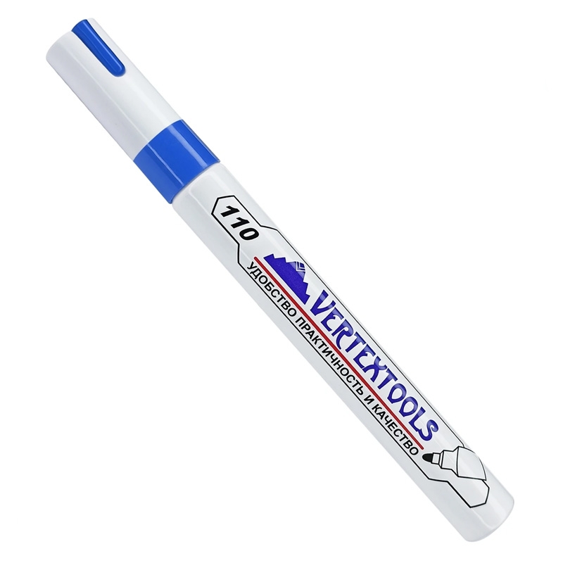 Маркер краска строительный, красный наносит линию на различные поверхности: стекло, металл, бетон, пластик, дерево, текстиль и резину. Им можно писать на влажных, шершавых, масляных и пористых материалах. Надписи не выгорают на солнце и устойчивы к механическим воздействиям. Толщина линии составляет 4 мм.