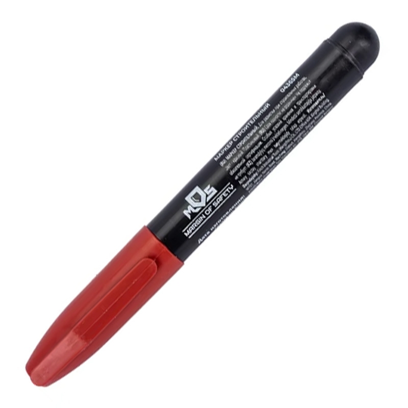 Маркер строительный, красный предназначен для нанесения чётких и долговечных надписей на различных поверхностях. Благодаря насыщенному цвету красные линии хорошо видны и устойчивы к стиранию, что делает маркер идеальным инструментом для строительных и ремонтных работ.