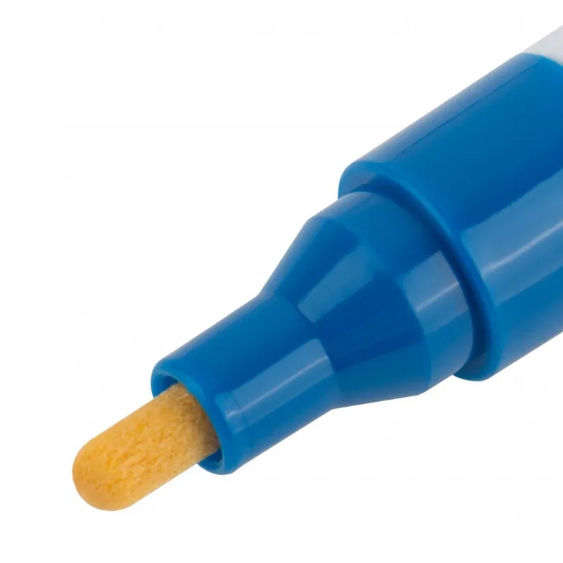 Маркер строительный с жидким красящим составом, алюминевый корпус, синий предназначен для нанесения разметочных линий на разные поверхности, включая картон, металл, пластик, стекло и другие материалы. Толщина линии составляет 2 мм, и след от маркера получается чётким и ярким. Корпус изготовлен из алюминия, который выдерживает высокие нагрузки. Цвет чернил можно легко определить по цвету колпачка маркера.