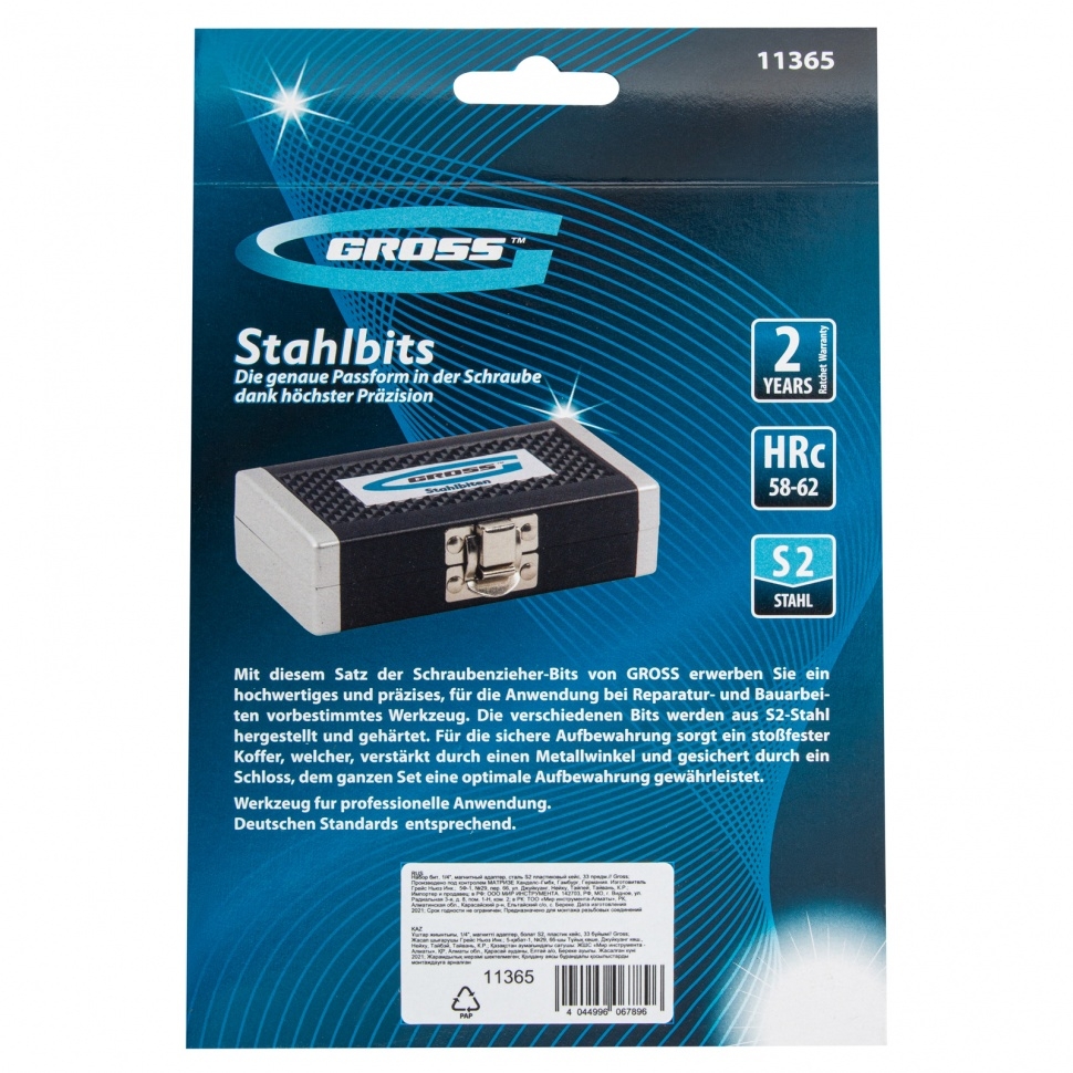 Набор бит, 1/4, магнитн.адапт., сталь S2, пластик.кейс 33предм. Gross