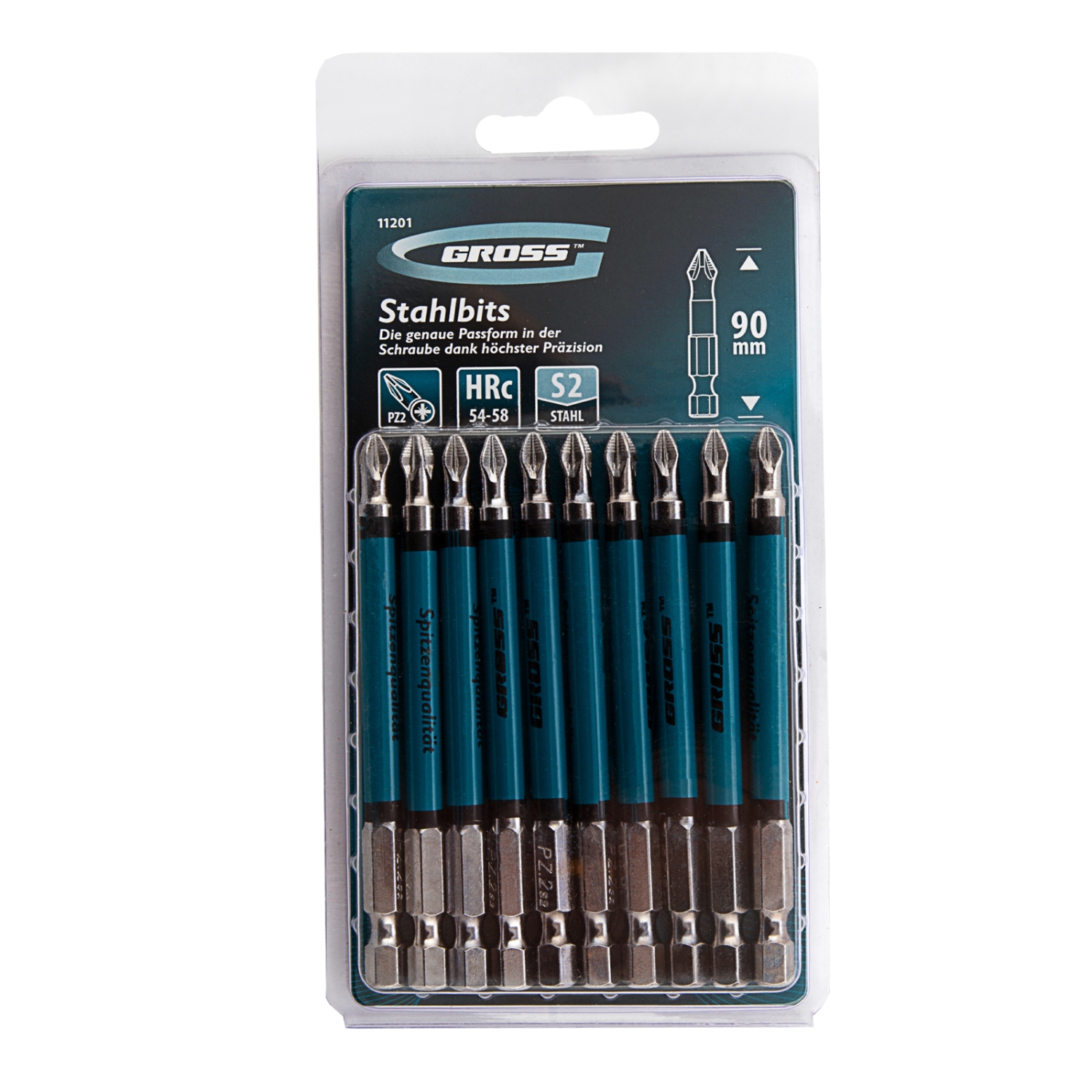 Набор односторонних бит PZ x 90 мм Gross 11201 включает в себя 10 сменных насадок из стали S2 с крестообразными шлицами Pozidriv и шестигранными хвостовиками 1/4 дюйма, рассчитанными на работу с шуруповертом. Профессиональная оснастка обеспечивает быстрый монтаж и демонтаж резьбовых соединений с углублением PZ2. Устойчивое сцепление с крепежом благодаря дополнительным ребрам на шлице Позидрайв позволяет увеличить крутящий момент и снизить риск соскакивания биты. Долговечность — насечки на шлице препятствуют проскальзыванию и «слизыванию» бит, дополнительно усиливают контроль при работе с саморезами по дереву.