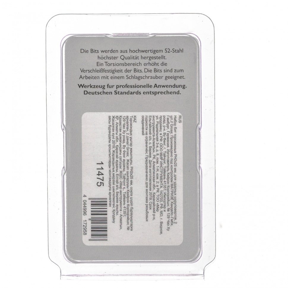 Набор бит торсионных PH2х25 мм, для ударн.шуроповертов 2шт Gross