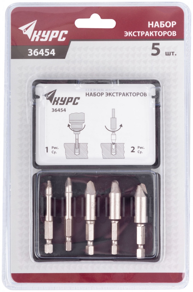 Набор экстракторов для болтов и шпилек усиленный, HSS сталь, 5шт.
