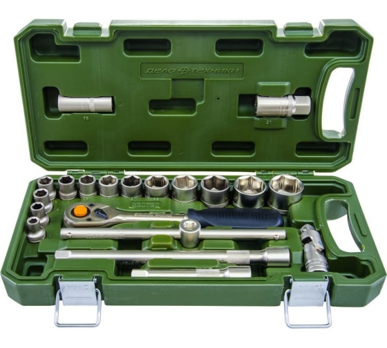 Набор 12-тигранных головок 1/2 20 предметов ДТ/20 Дело Техники 622121 используется для монтажа/демонтажа крепежных изделий. Приспособления выполнены из качественной хромванадиевой стали, отличающейся повышенной прочностью и износостойкостью. Головки размещены на пластиковом держателе.Набор головок 1/2 20 предметов ДТ/6 Дело Техники 620720 пригодится в гараже, автомастерской, на ремонтной площадке для работы с торцевыми соединениями. Составляющие комплекта изготовлены из хромванадиевой стали, прочной и твердой. Трещотка имеет накладку на рукоятке - для надежного удержания инструмента, исключая выскальзывание. Набор расположен в кейсе, что удобно для транспортировки и хранения.