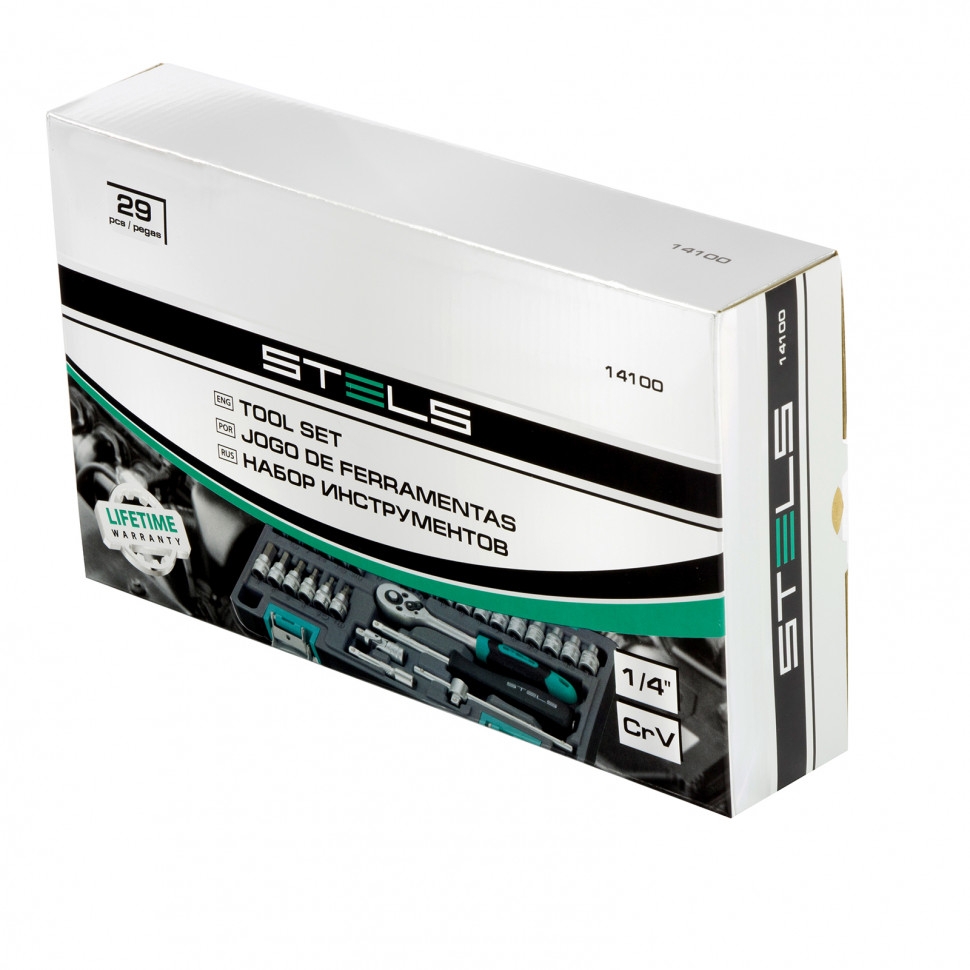 Набор инструментов 29 предметов 1/4 CrV пластиковый кейс Stels