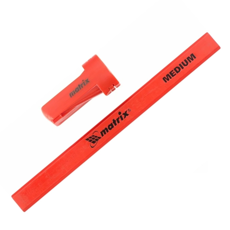 В набор Matrix 84814 входят десять малярных карандашей прямоугольной формы длиной 175 мм и точилка в тубе. Грифели средней твёрдости HB подходят для нанесения разметки как на мягкие, так и на твёрдые поверхности, что делает карандаши полезными при проведении ремонтных и строительных работ. Если карандаш затупится, точилка поможет быстро восстановить его работоспособность. Карандаши без сменных грифелей. Твердость карандашей HB.