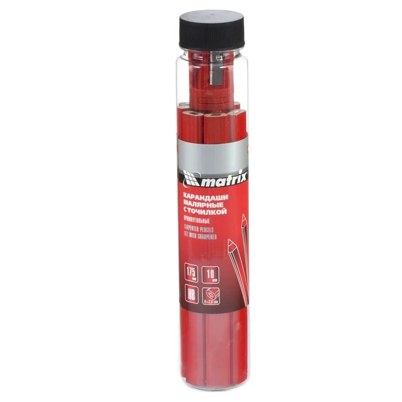 Набор карандашей малярных прямоугольных с точилкой в тубе 175 мм, 10 шт, Matrix