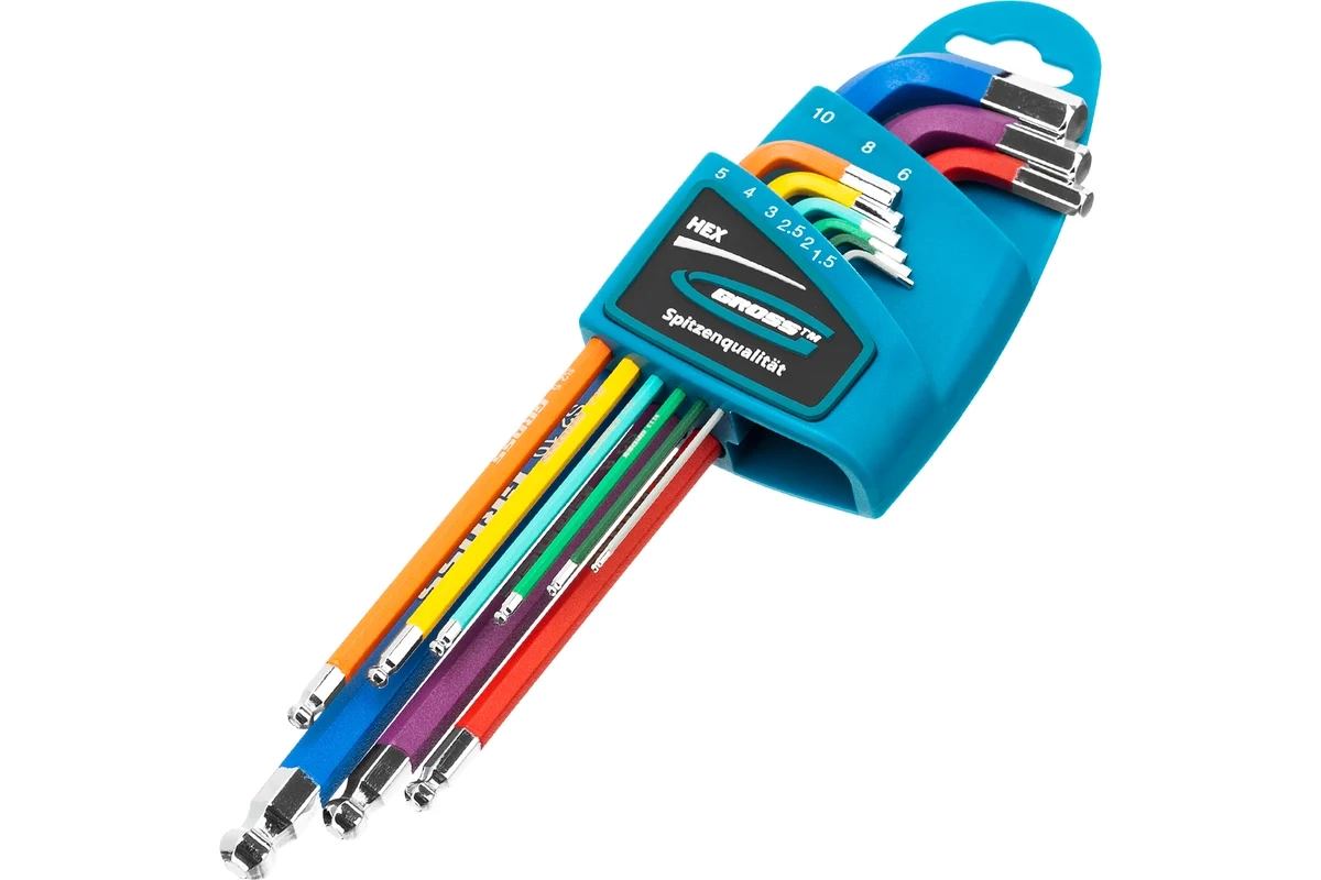 Набор ключей имбусовых НЕX 1,5-10мм 9 шт. S2 магнит экстра-длин.с шаром хром. краска Gross